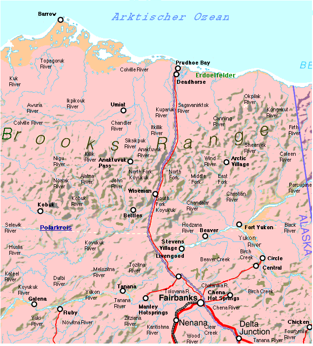 Diese Karte wurde zum groessten Teil von uns selbst auf Wunsch unserer Kunden erstellt und zeigt fast alle kanubaren Fluesse Nordalaskas: